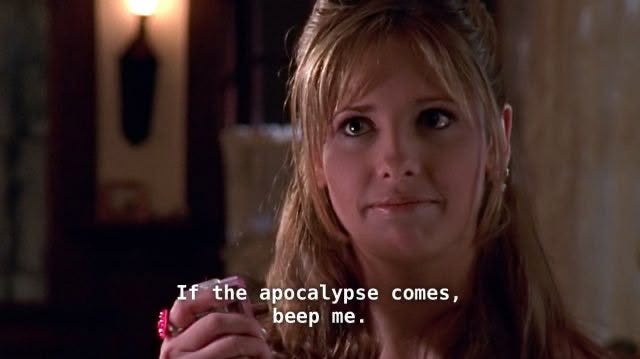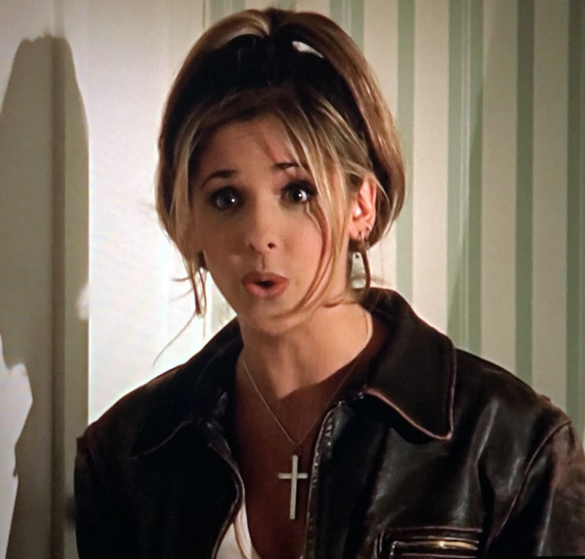 Subtle but iconic! Buffy was trying to live a teenage life looking cute, flirting with boys, passing exams…. while facing death every night.