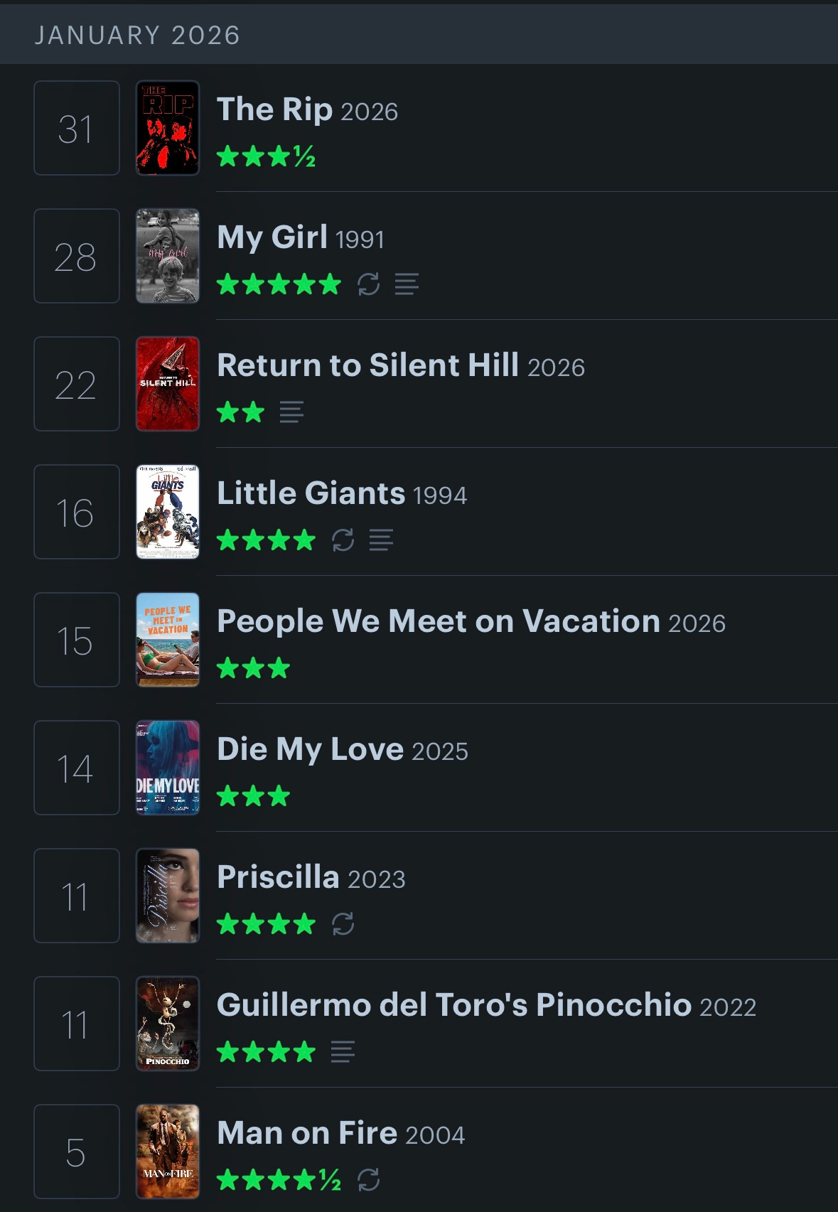 Lots of re-watches and a few new in the month of January! My most anticipated watch of the year turned out to be a flop- I’m looking at you Return to Silent Hill! Sadly, no standout movies made the cut in faves but a show most definitely did!